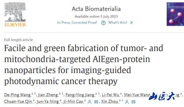 曹济民教授与周鑫教授团队在《Acta Biomaterialia》发文:线粒体靶向AIEgen-蛋白纳米粒子用于成像引导的肿瘤光动力治疗-国产亚洲精品美女久久久_99久无码中文字幕一本久道_亚洲成AV人影院_亚洲AV影院一区二区三区 狠狠躁夜夜躁人人爽天天不卡_国产激情久久久久影院老熟女_精品性高朝久久久久久久