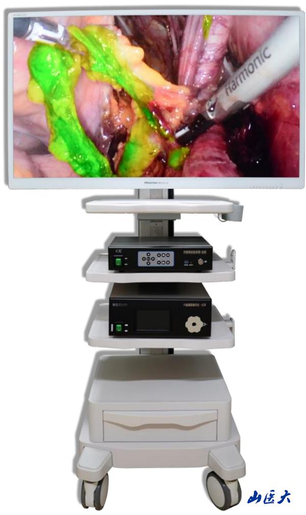 近日,我校第一医院杨晓峰团队成功完成了我省首例光学分子影像腹腔镜下重复肾输尿管中异常输尿管切除手术。本次临床实施采用多模式光学分子影像可视化识别技术方案,对于近红外荧光成像术中引导、靶向定位的理论基础和核心技术的研究具有重要科学价值。杨晓峰团队在手术过程中采用自主研发的赛恩思®超高清光学分子影像腹腔镜进入患者腹腔,并检测到异位输尿管内吲哚菁绿(ICG)发出的可视化信号,快速实现异位输尿管的示踪与定位,成功保证了患者异常输尿管的精准分离。