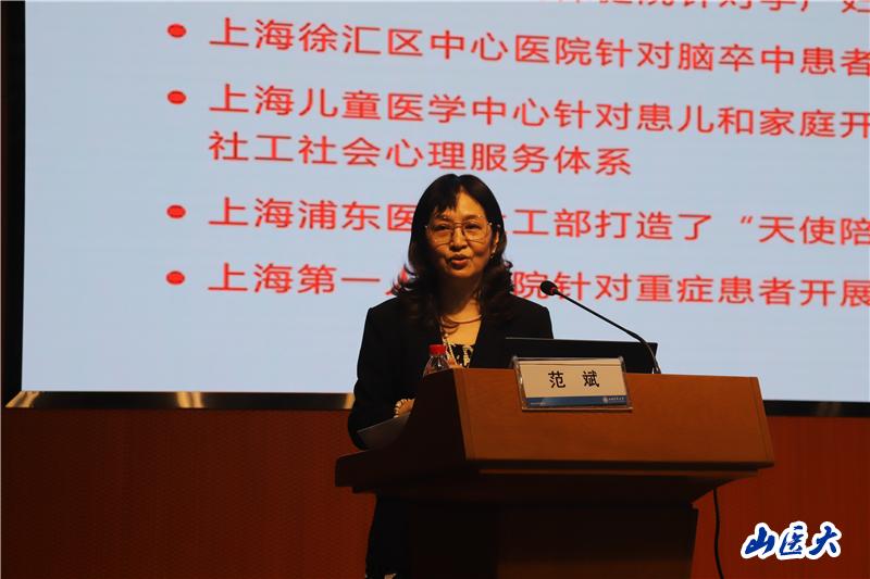 会议特邀中国社会工作协会副会长、华东理工大学范斌教授,重庆工商大学李滨教授,我校第二医院团委书记张鹏作报告。各位专家以“医务社会工作实务发展”为主题,共同探讨医务社会工作在多元模式下的建设与发展,探索医务社会工作人才培养模式的优化路径;分享讨论了我国东、中、西部医务社会工作发展现状与趋势。与会的其他专家学者分别就医务社会工作岗位设置、专业水平提升、人才队伍建设、服务模式创新等进行了热烈讨论,为现场师生带来了一场学术盛宴。