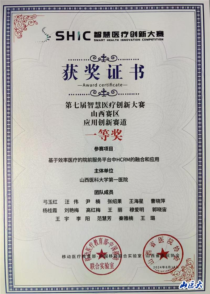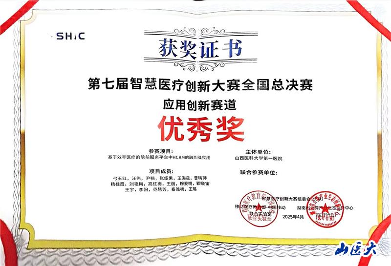 4月23日至25日,我校第一医院项目《基于效率医疗的院前服务平台中HCRM的融合和应用》作为山西赛区一等奖参加了在长沙举办的第七届智慧医疗创新大赛全国总决赛,该案例基于《医院患者信息推送服务规范》《医院患者信息推送服务基本数据集》和《医疗运送服务信息化基本功能规范》标准制定,结合科技温度与人文关怀并重的创新实践,赢得评委与行业同仁的赞誉,提供了可借鉴的“山西标准”,荣获优秀奖。