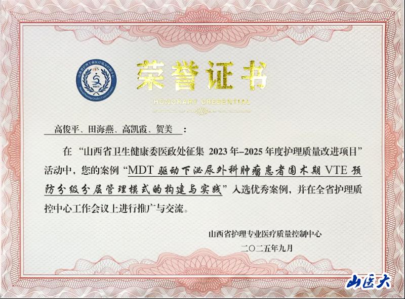 在山西省“2023-2025年度护理质量改进项目”评选中,我校附属第一医院护理团队提交的两项案例因创新性强、实用价值突出,双双获评“省级优秀案例”,并在全省护理质控中心工作会议上作经验推广,充分展现了第一医院在护理质量管理领域的引领示范作用。