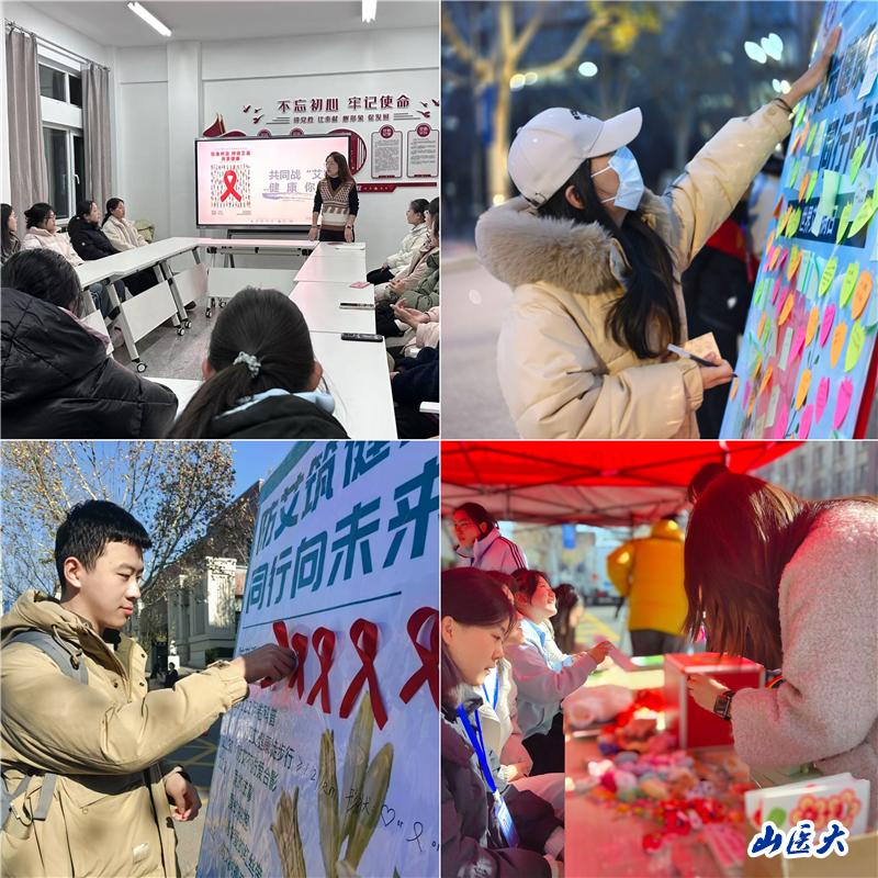通过聆听防艾宣讲和参与知识竞答,同学们增强了对艾滋病防治知识的了解,对艾滋病传播途径、预防手段等知识有了更清晰的认知,进一步增强了防艾意识,提高了自我保护能力。以爱防艾,向阳而生。同学们拥抱贴有艾滋病患者的玩偶,制作青春红丝带,张贴防艾暖心标语,以爱心和理解给予艾滋病患者最大的关爱和尊重,以实际行动消除社会大众对艾滋病的误解和恐惧,艾滋无情,人却有情,山医学子用青春守护健康,为构建和谐有爱、健康无艾的校园贡献青春力量。